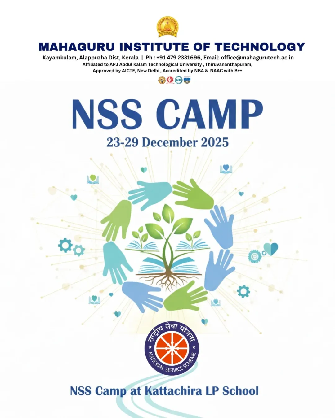 MIT's NSS Unit 216 is organizing an NSS Camp at Kattachira LP School from December 23 to 29, 2025. The camp aims to promote community service and social responsibility among students through various activities and outreach programs in the local community.