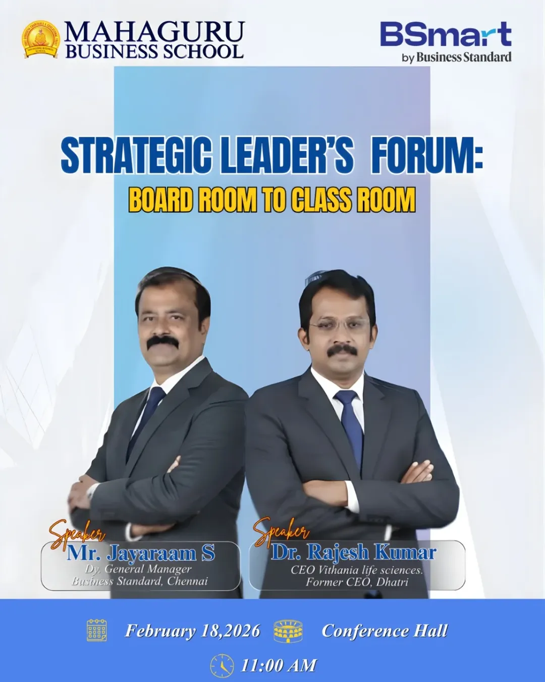 Mahaguru Business School is organizing an inspiring MBS Talk on the theme “Breathe, Build, Belong”, aimed at helping participants manage stress effectively and build lasting connections.