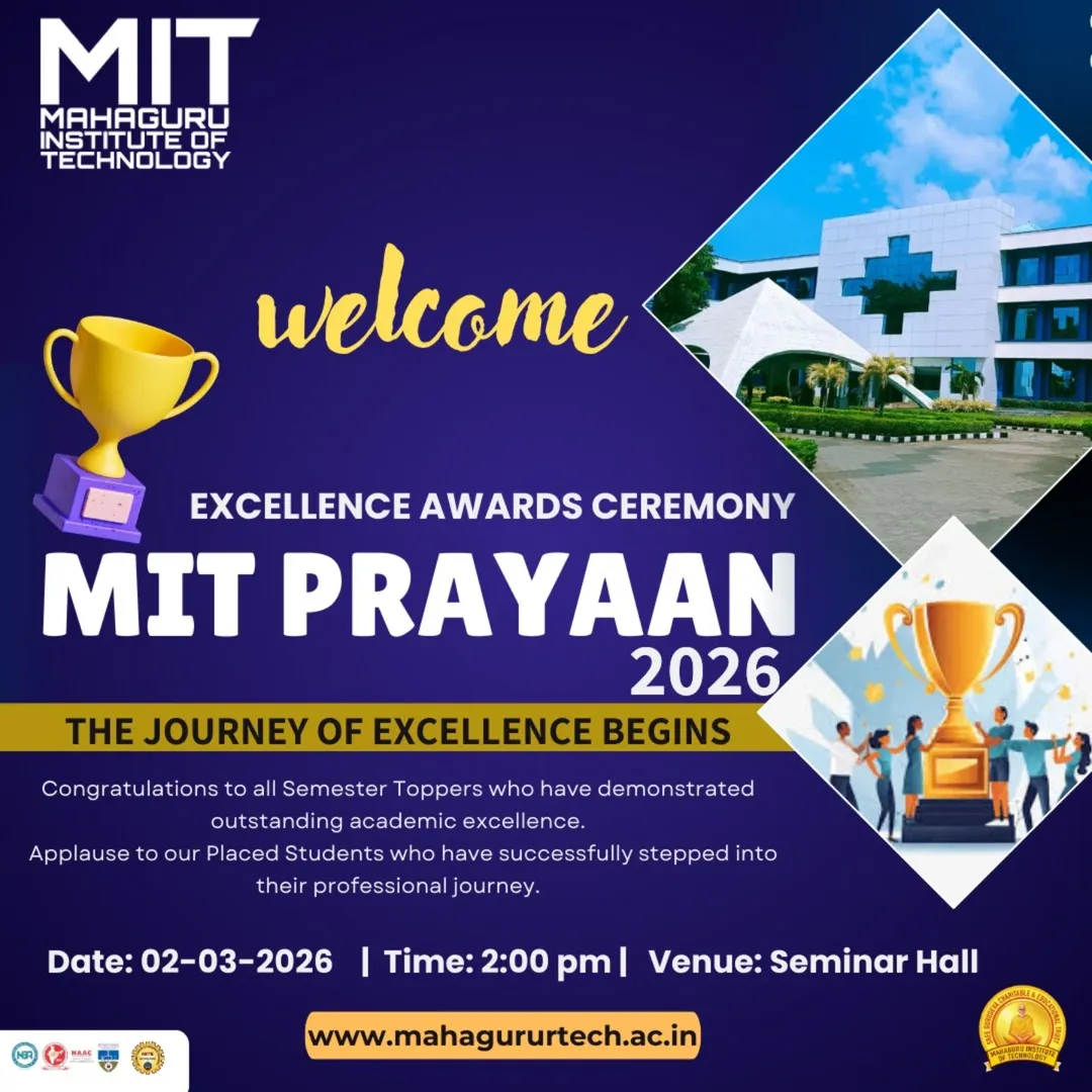 MIT PRAYAAN 2026 celebrates academic excellence and student achievements. The Excellence Awards Ceremony honors semester toppers and applauds placed students as they embark on their professional journeys, marking the beginning of new successes.